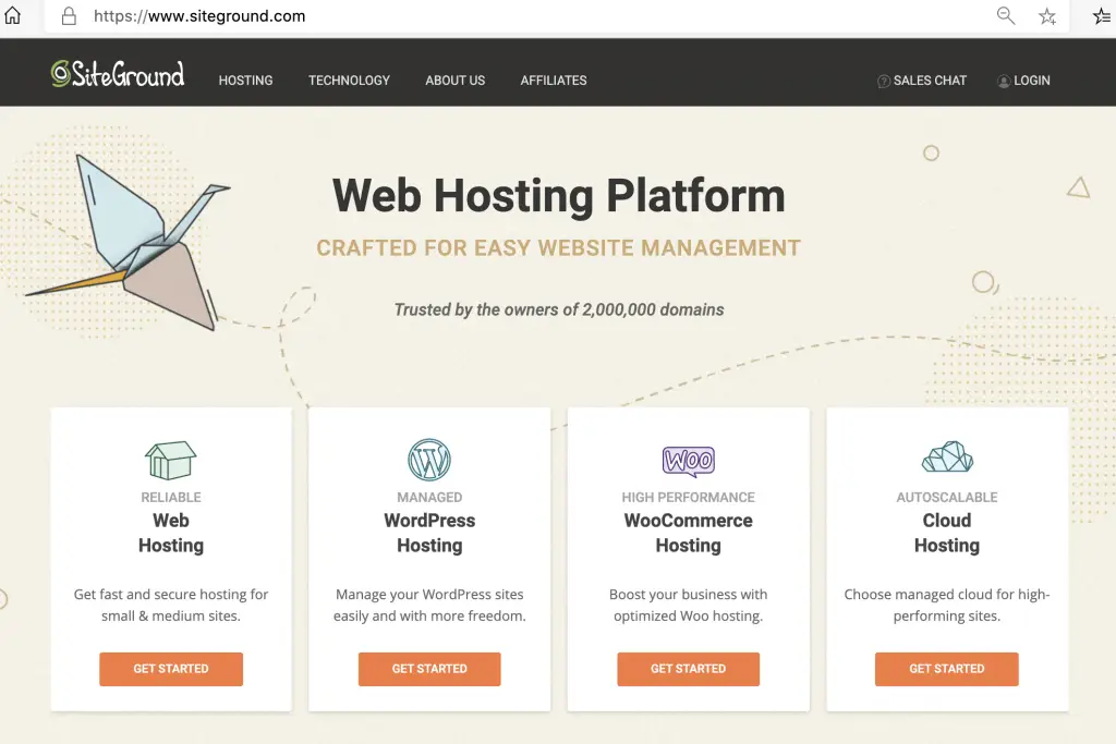 Start a new website to migrate your content from wordpress.com to SiteGround.