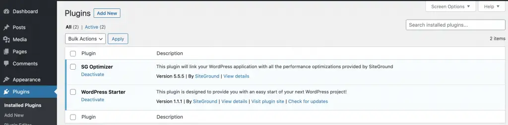 SiteGround automatically installs two plugins on any new WordPress site. One is the ‘SG Optimizer’ which is the best optimizer plugin you can use on SiteGround, since it connects to their hosting and caching services.