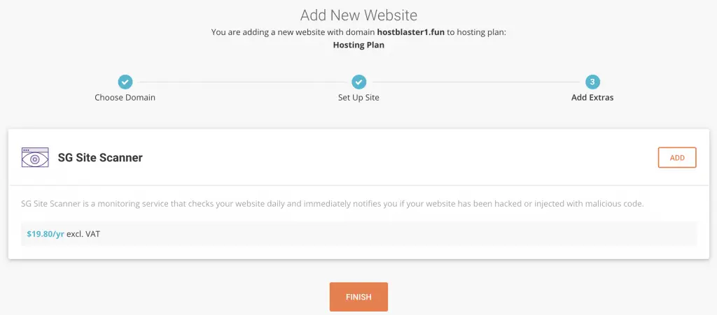 You then get prompted to purchase an optional site-scanning service. I typically use WordFence to protect my sites, so I have never signed up for this.